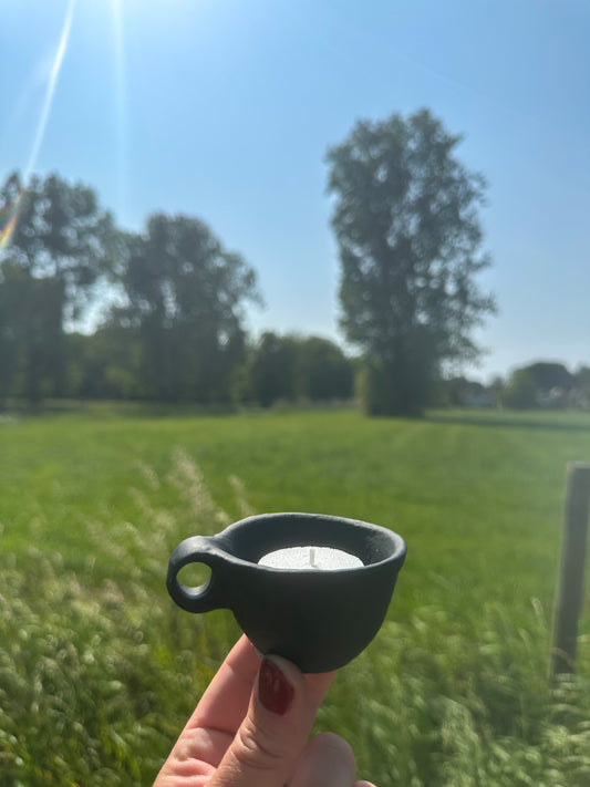 AanbiedingTheelichthouder zwart met oortje