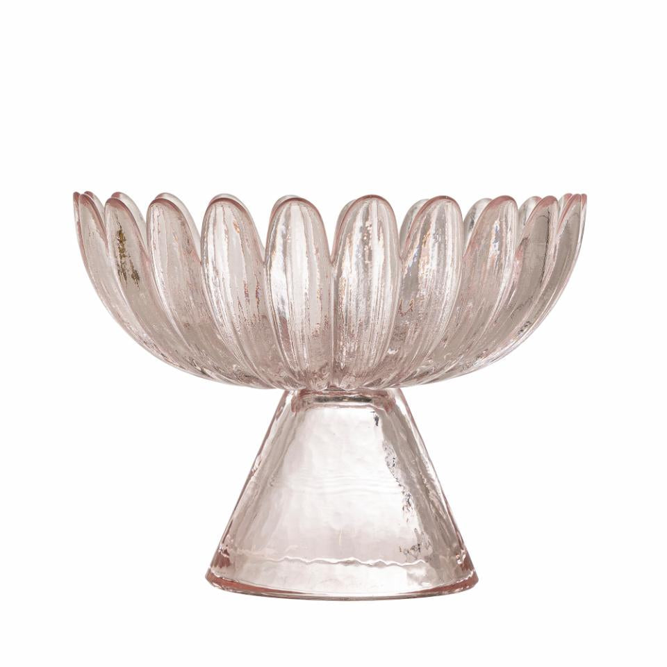 Roze glazen schaal op voet – bloemvormig design